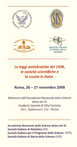 Scienza (SISS) hanno organizzato il Convegno "Le leggi antiebraiche