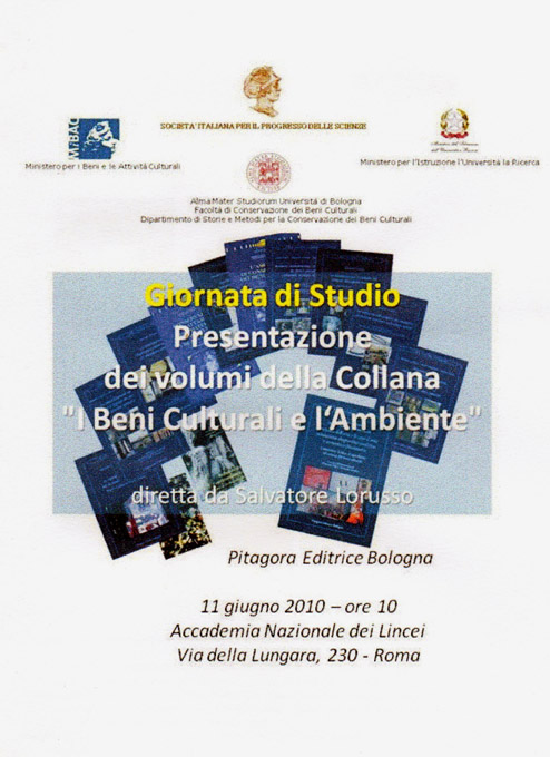 l’11 giugno, alle ore 10.00, si è svolta presso la Accademia Nazionale dei Lincei la Giornata di studio incentrata sulla “Presentazione dei volumi della Collana I Beni culturali e l’ambiente" (1992-2010), Pitagora Editrice di Bologna, collana diretta dal Prof. Salvatore Lorusso, ordinario di “Chimica dell’ambiente e dei beni culturali” presso l'Università di Bologna e membro del Consiglio di Presidenza della SIPS.