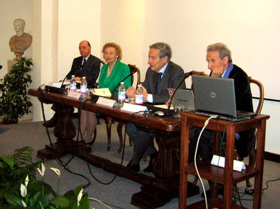 da sx V. Cappelletti (Presidente Istituto Italiano di Studi Germanici), Elettra Marconi (Pricipessa figlia di Guglielmo Marconi), M. Cumo (Presidente della Società Italian per il Progresso delle Scienze), G. Falciasecca