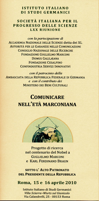 Che cosa: Convegno Comunicare nell’età marconiana - Programma di ricerca nel centenario del Nobel a Guglielmo Marconi e Karl Ferdinand Braun.